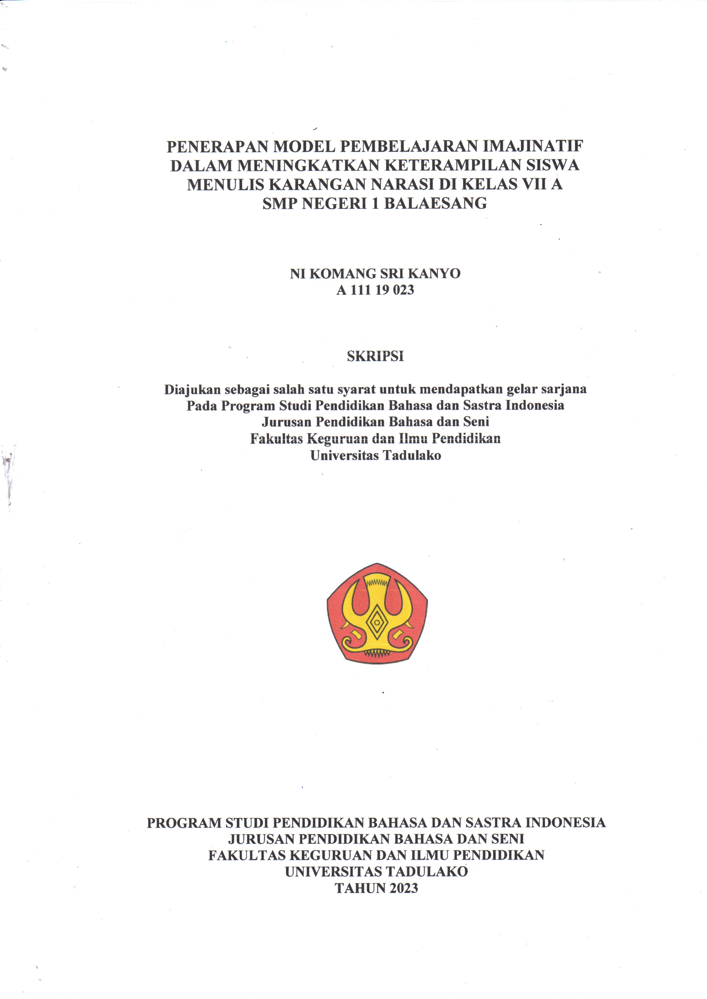 PENERAPAN MODEL PEMBELAJARAN IMAJINATIF DALAM MENINGKATKAN KETERAMPILAN SISWA MENULIS KARANGAN NARASI DI KELAS VII A SMP NEGERI 1 BALAESANG