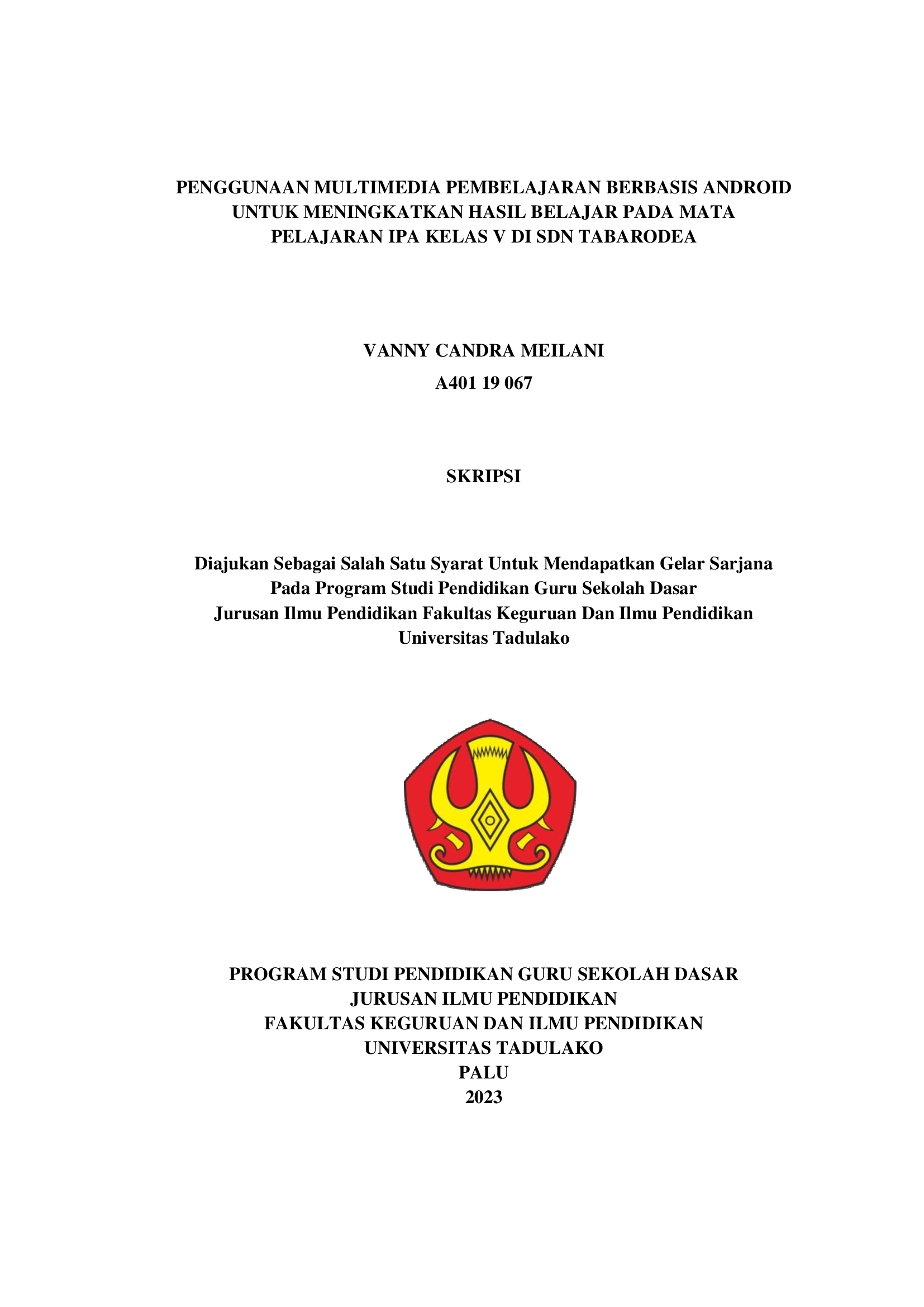 PENGGUNAAN MULTIMEDIA PEMBELAJARAN BERBASIS ANDROID UNTUK MENINGKATKAN HASIL BELAJAR PADA MATA PELAJARAN IPA KELAS V DI SDN TABARODEA